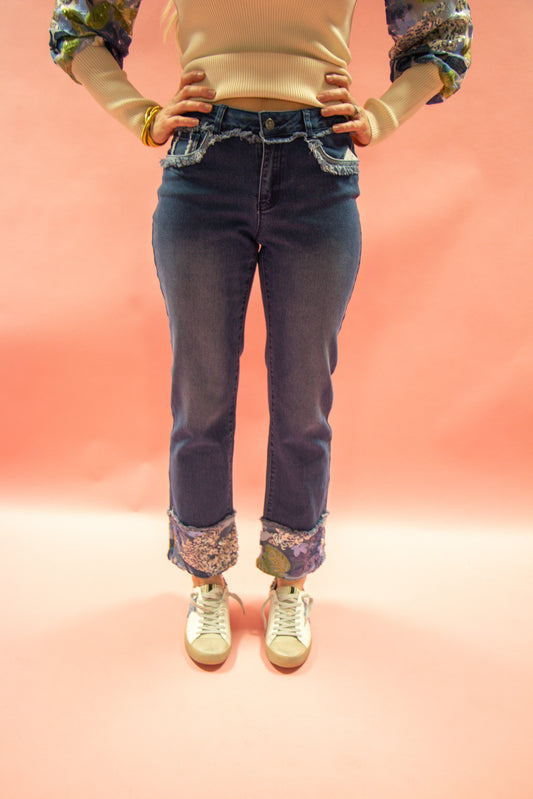 Boot cut Floral Bottom Jeans