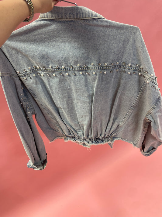 Distressed Beaded Denim Jacket