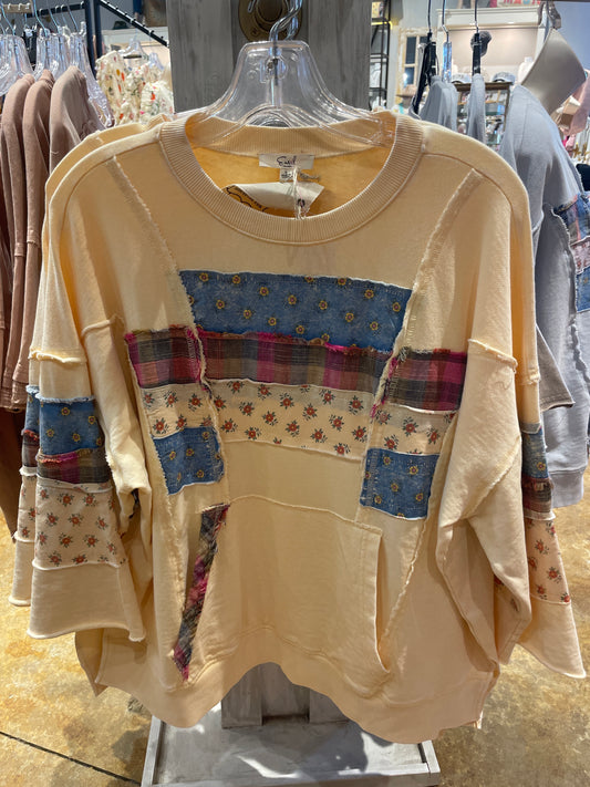 Sold out3/4 SLEEVE PATCH WORK TOP