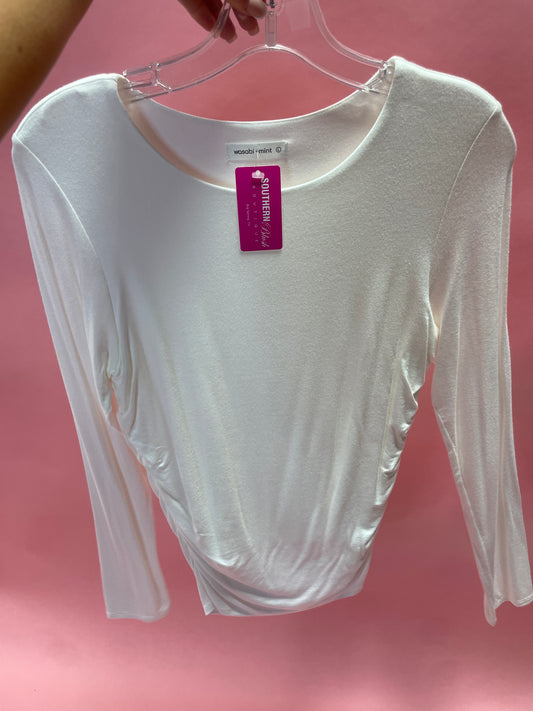 double layer side ruched round neck long sleeve top