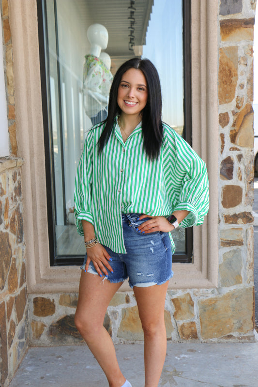 Neon Button Up Stripped Top