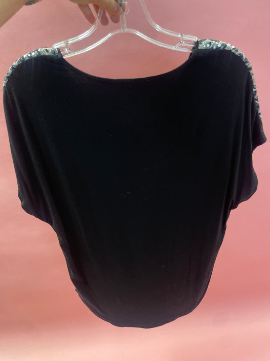 DROP SHOULDER LEOPARD SEQUIN WITH CONTRAST KNIT BACK